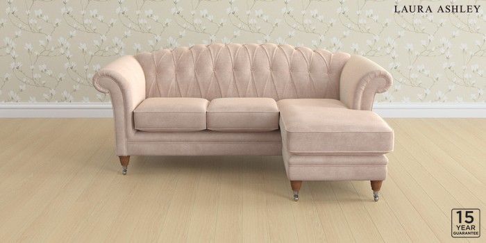 6.12.13 Buy Gloucester Button Back by Laura Ashley Medium Sofa Chaise - Universal Orla Chalk Pink Low Chrome Castor - Teak from the Next UK online shop Click here to use our accessible website