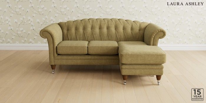 6.12.1 Buy Gloucester Button Back by Laura Ashley Medium Sofa Chaise - Universal Orla Gold Natural Low Chrome Castor - Teak from the Next UK online shop Click here to use our accessible website