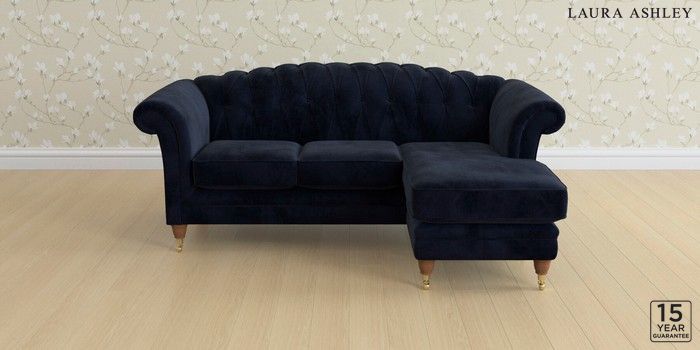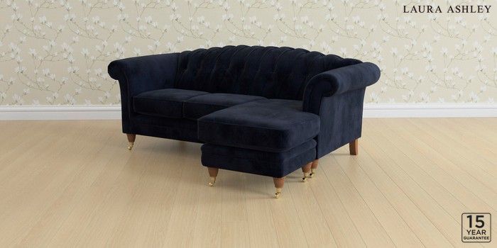6.12.13 Buy Gloucester Button Back by Laura Ashley Medium Sofa Chaise - Universal Orla Midnight Navy Low Brass Castor - Teak from the Next UK online shop Click here to use our accessible website