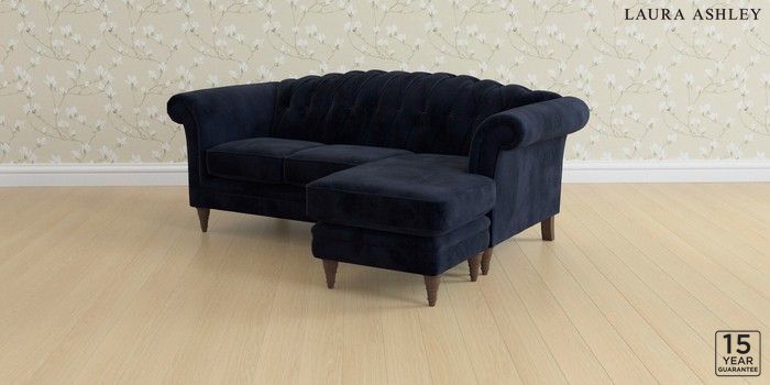 6.12.1 Buy Gloucester Button Back by Laura Ashley Medium Sofa Chaise - Universal Orla Midnight Navy Low Turned - Chestnut from the Next UK online shop Click here to use our accessible website