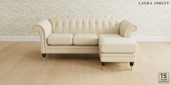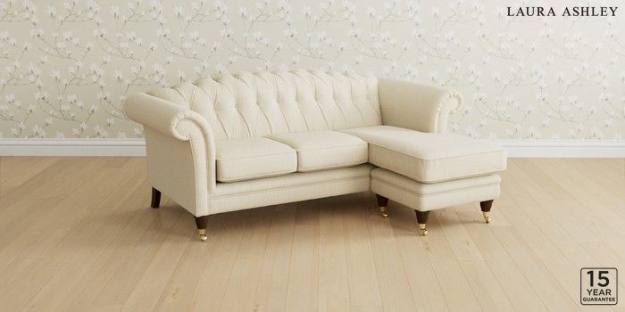 6.12.1 Buy Gloucester Button Back by Laura Ashley Medium Sofa Chaise - Universal Orla Oyster Natural Low Brass Castor - Chestnut from the Next UK online shop Click here to use our accessible website