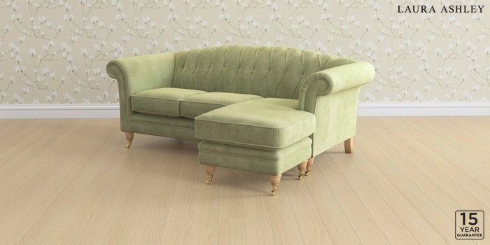 6.12.13 Buy Gloucester Button Back by Laura Ashley Medium Sofa Chaise - Universal Orla Pale Hedgerow Green Low Brass Castor - Light Oak from the Next UK online shop Click here to use our accessible website