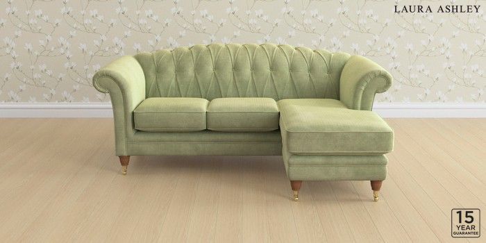 6.12.13 Buy Gloucester Button Back by Laura Ashley Medium Sofa Chaise - Universal Orla Pale Hedgerow Green Low Brass Castor - Teak from the Next UK online shop Click here to use our accessible website