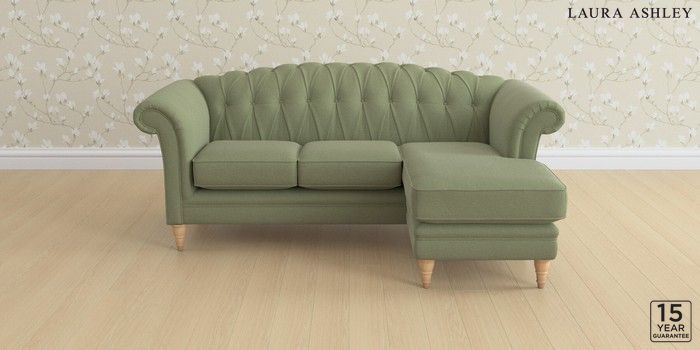 6.12.1 Buy Gloucester Button Back by Laura Ashley Medium Sofa Chaise - Universal Peyton Hedgerow Green Low Turned - Light Oak from the Next UK online shop Click here to use our accessible website