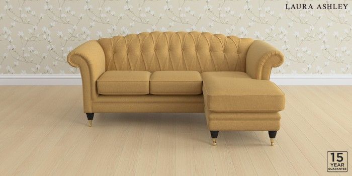6.12.13 Buy Gloucester Button Back by Laura Ashley Medium Sofa Chaise - Universal Peyton Ochre Yellow Low Brass Castor - Black from the Next UK online shop Click here to use our accessible website