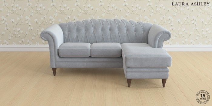 6.12.1 Buy Gloucester Button Back by Laura Ashley Medium Sofa Chaise - Universal Peyton Powder Blue Low Turned - Chestnut from the Next UK online shop Click here to use our accessible website