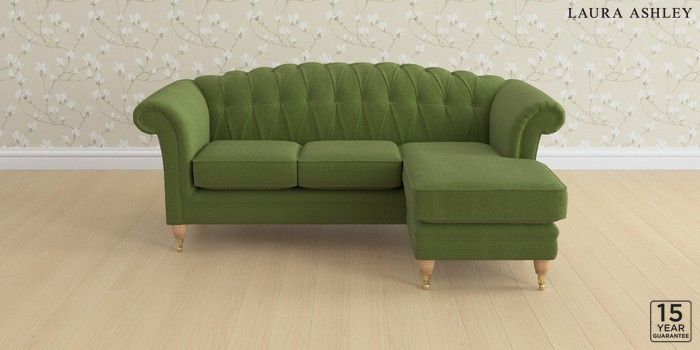 6.12.13 Buy Gloucester Button Back by Laura Ashley Medium Sofa Chaise - Universal Tichwell Olive Green Low Brass Castor - Light Oak from the Next UK online shop Click here to use our accessible website