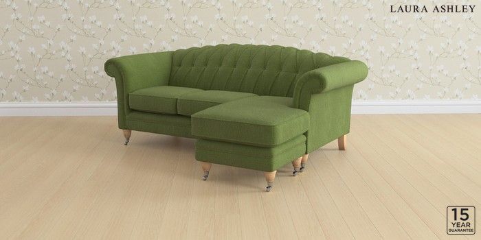 6.12.1 Buy Gloucester Button Back by Laura Ashley Medium Sofa Chaise - Universal Tichwell Olive Green Low Chrome Castor - Light Oak from the Next UK online shop Click here to use our accessible website