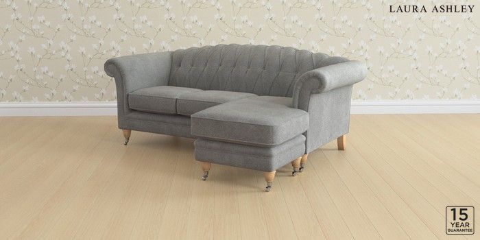 6.12.13 Buy Gloucester Button Back by Laura Ashley Medium Sofa Chaise - Universal Wooton Dark Steel Grey Low Chrome Castor - Light Oak from the Next UK online shop Click here to use our accessible website