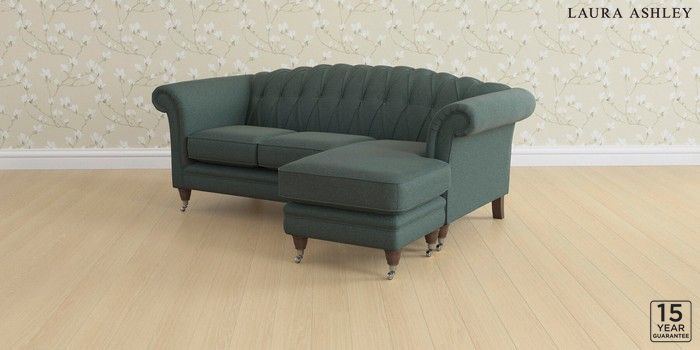 6.12.1 Buy Gloucester Button Back by Laura Ashley Medium Sofa Chaise - Universal Wooton Forest Green Low Chrome Castor - Chestnut from the Next UK online shop Click here to use our accessible website