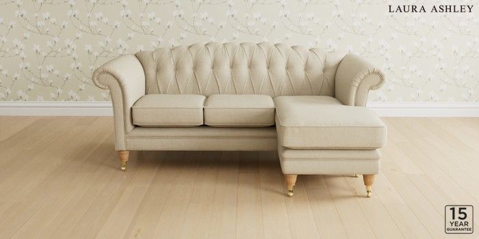 6.12.13 Buy Gloucester Button Back by Laura Ashley Medium Sofa Chaise - Universal Wooton Natural Low Brass Castor - Light Oak from the Next UK online shop Click here to use our accessible website