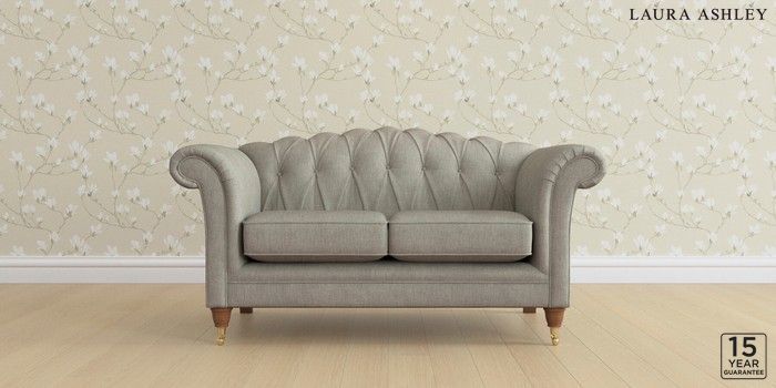 6.12.1 Buy Gloucester Button Back by Laura Ashley 2 Seater Small Sofa Bainton Pale Steel Grey Low Brass Castor - Teak from the Next UK online shop Click here to use our accessible website