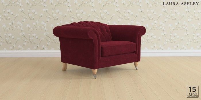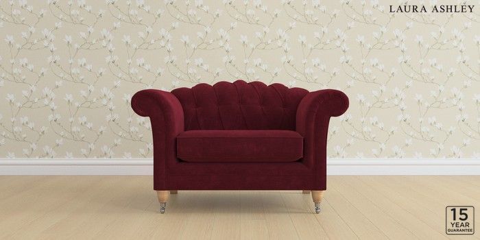 6.12.1 Buy Gloucester Button Back by Laura Ashley Snuggle Alwyn Velvet Burgundy Red Low Chrome Castor - Light Oak from the Next UK online shop Click here to use our accessible website