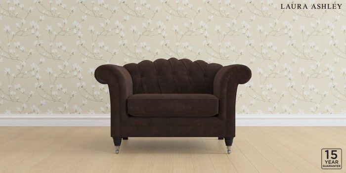 6.12.1 Buy Gloucester Button Back by Laura Ashley Snuggle Alwyn Velvet Chocolate Brown Low Chrome Castor - Black from the Next UK online shop Click here to use our accessible website