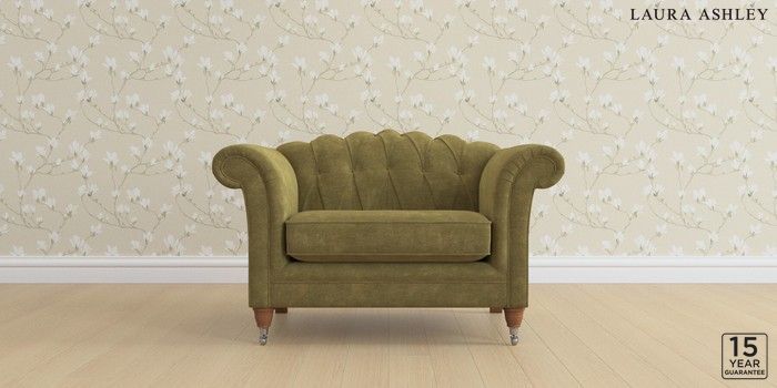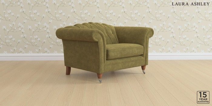 6.12.1 Buy Gloucester Button Back by Laura Ashley Snuggle Alwyn Velvet Olive Green Low Chrome Castor - Teak from the Next UK online shop Click here to use our accessible website