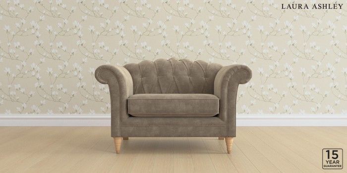 6.12.13 Buy Gloucester Button Back by Laura Ashley Snuggle Alwyn Velvet Truffle Natural Low Turned - Light Oak from the Next UK online shop Click here to use our accessible website