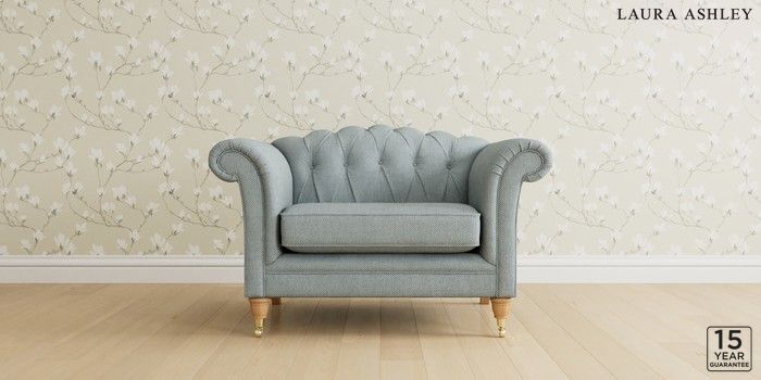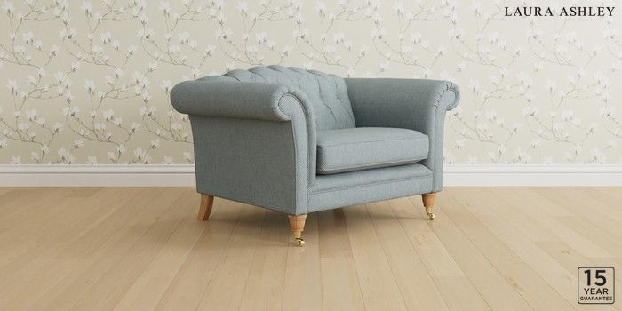 6.12.1 Buy Gloucester Button Back by Laura Ashley Snuggle Anneliese Seaspray Blue Low Brass Castor - Light Oak from the Next UK online shop Click here to use our accessible website