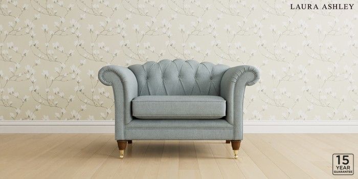 6.12.1 Buy Gloucester Button Back by Laura Ashley Snuggle Anneliese Seaspray Blue Low Brass Castor - Teak from the Next UK online shop Click here to use our accessible website