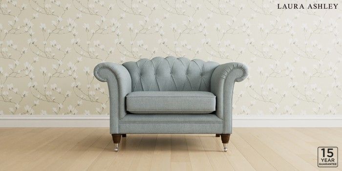 6.12.1 Buy Gloucester Button Back by Laura Ashley Snuggle Anneliese Seaspray Blue Low Chrome Castor - Chestnut from the Next UK online shop Click here to use our accessible website