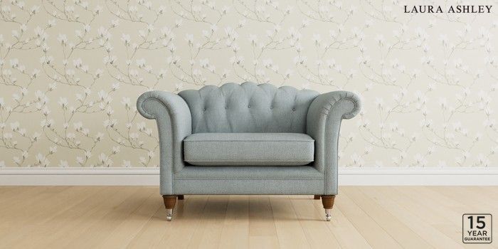 6.12.1 Buy Gloucester Button Back by Laura Ashley Snuggle Anneliese Seaspray Blue Low Chrome Castor - Teak from the Next UK online shop Click here to use our accessible website