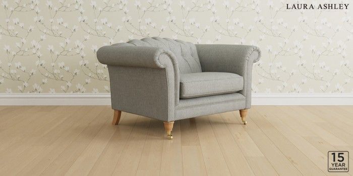 6.12.1 Buy Gloucester Button Back by Laura Ashley Snuggle Anneliese Steel Grey Low Brass Castor - Light Oak from the Next UK online shop Click here to use our accessible website