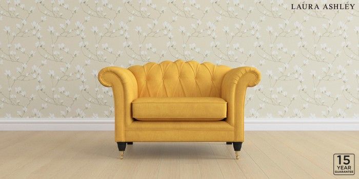 6.12.1 Buy Gloucester Button Back by Laura Ashley Snuggle Bainton Ochre Yellow Low Brass Castor - Black from the Next UK online shop Click here to use our accessible website
