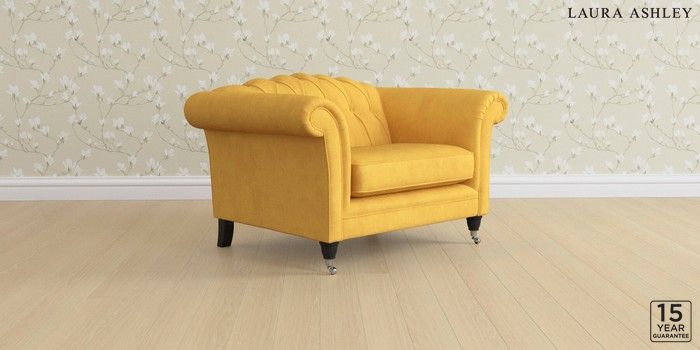 6.12.1 Buy Gloucester Button Back by Laura Ashley Snuggle Bainton Ochre Yellow Low Chrome Castor - Black from the Next UK online shop Click here to use our accessible website