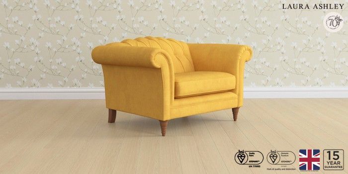 6.12.1 Buy Gloucester Button Back by Laura Ashley Snuggle Bainton Ochre Yellow Low Turned - Teak from the Next UK online shop Click here to use our accessible website