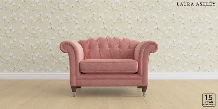 6.12.1 Buy Gloucester Button Back by Laura Ashley Snuggle Bainton Old Rose Pink Low Chrome Castor - Chestnut from the Next UK online shop Click here to use our accessible website