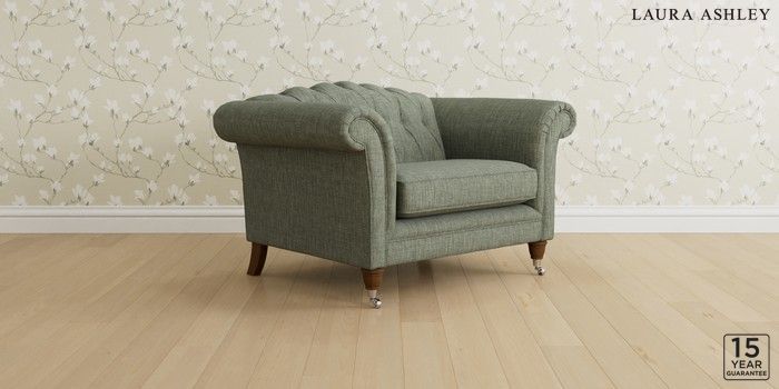 6.12.1 Buy Gloucester Button Back by Laura Ashley Snuggle Bainton Sage Green Low Chrome Castor - Teak from the Next UK online shop Click here to use our accessible website