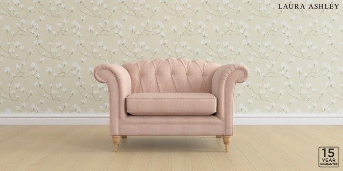 6.12.1 Buy Gloucester Button Back by Laura Ashley Snuggle Edwin Chenille Blush Pink Low Brass Castor - Light Oak from the Next UK online shop Click here to use our accessible website