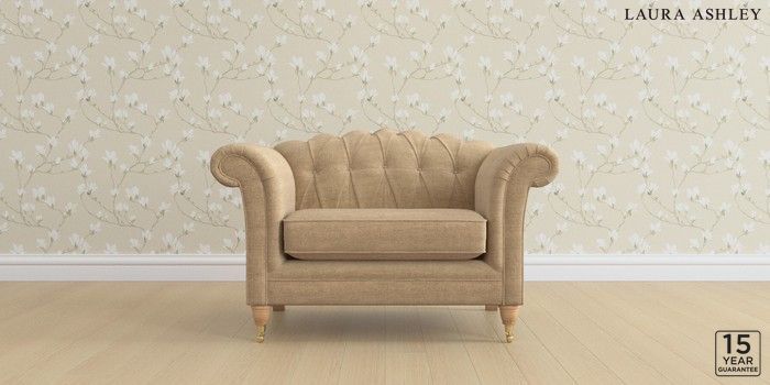 6.12.1 Buy Gloucester Button Back by Laura Ashley Snuggle Edwin Chenille Gold Natural Low Brass Castor - Light Oak from the Next UK online shop Click here to use our accessible website
