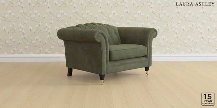 6.12.1 Buy Gloucester Button Back by Laura Ashley Snuggle Edwin Chenille Hedgerow Green Low Brass Castor - Black from the Next UK online shop Click here to use our accessible website