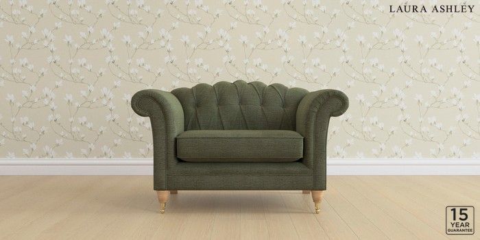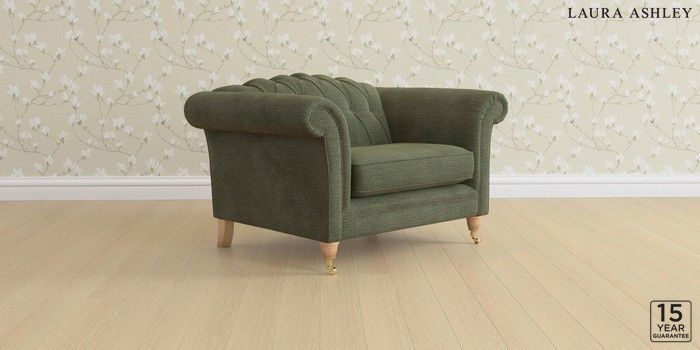 6.12.1 Buy Gloucester Button Back by Laura Ashley Snuggle Edwin Chenille Hedgerow Green Low Brass Castor - Light Oak from the Next UK online shop Click here to use our accessible website
