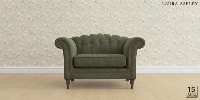 6.12.1 Buy Gloucester Button Back by Laura Ashley Snuggle Edwin Chenille Hedgerow Green Low Turned - Chestnut from the Next UK online shop Click here to use our accessible website
