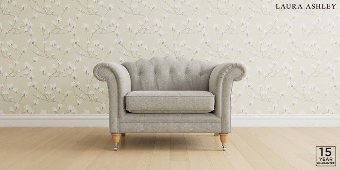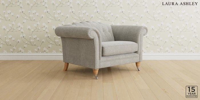 6.12.1 Buy Gloucester Button Back by Laura Ashley Snuggle Edwin Chenille Silver Grey Low Chrome Castor - Light Oak from the Next UK online shop Click here to use our accessible website