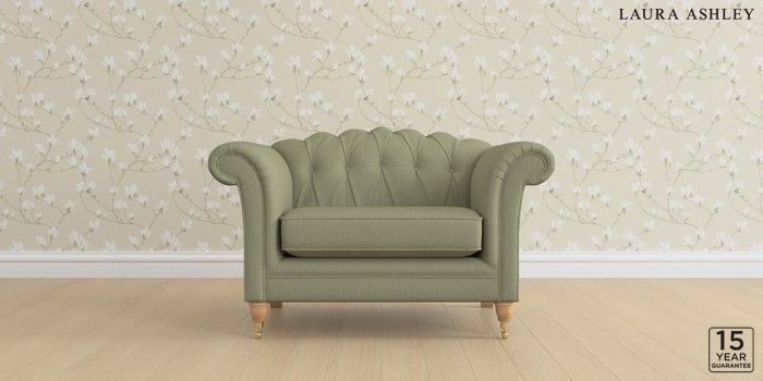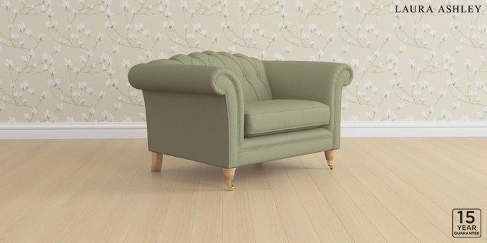 6.12.1 Buy Gloucester Button Back by Laura Ashley Snuggle Edwin Herringbone Hedgerow Green Low Brass Castor - Light Oak from the Next UK online shop Click here to use our accessible website