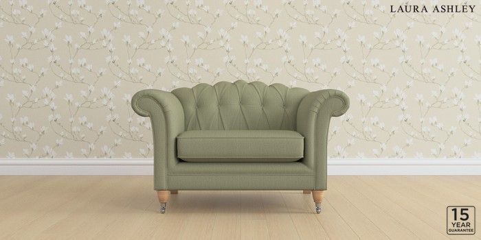 6.12.1 Buy Gloucester Button Back by Laura Ashley Snuggle Edwin Herringbone Hedgerow Green Low Chrome Castor - Light Oak from the Next UK online shop Click here to use our accessible website