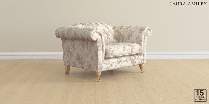 6.12.1 Buy Gloucester Button Back by Laura Ashley Snuggle Gosford Weave Dusky Plum Purple Low Brass Castor - Light Oak from the Next UK online shop Click here to use our accessible website