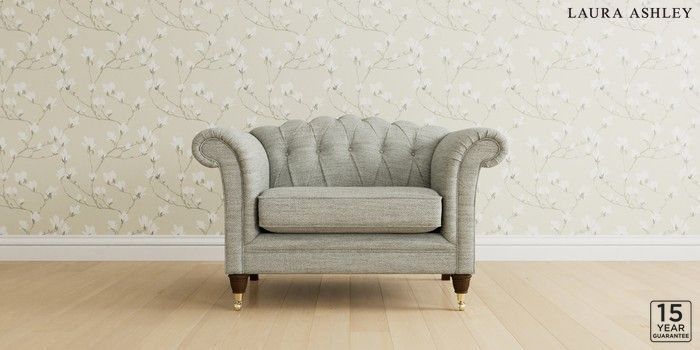 6.12.1 Buy Gloucester Button Back by Laura Ashley Snuggle Harley Dove Grey Low Brass Castor - Chestnut from the Next UK online shop Click here to use our accessible website