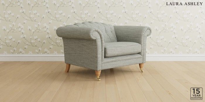 6.12.1 Buy Gloucester Button Back by Laura Ashley Snuggle Harley Dove Grey Low Brass Castor - Light Oak from the Next UK online shop Click here to use our accessible website