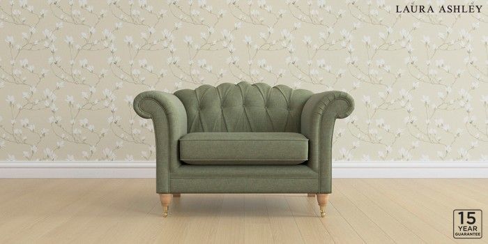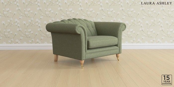 6.12.1 Buy Gloucester Button Back by Laura Ashley Snuggle Harley Moss Green Low Brass Castor - Light Oak from the Next UK online shop Click here to use our accessible website