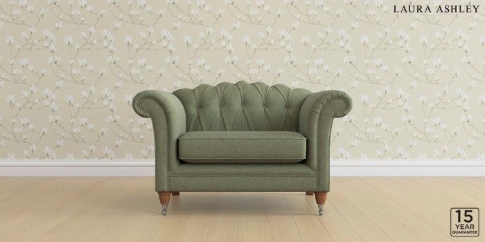 6.12.1 Buy Gloucester Button Back by Laura Ashley Snuggle Harley Moss Green Low Chrome Castor - Teak from the Next UK online shop Click here to use our accessible website