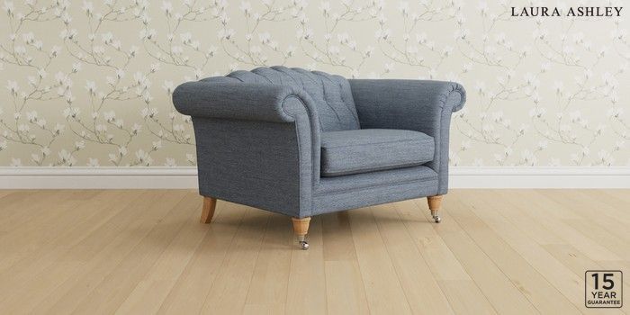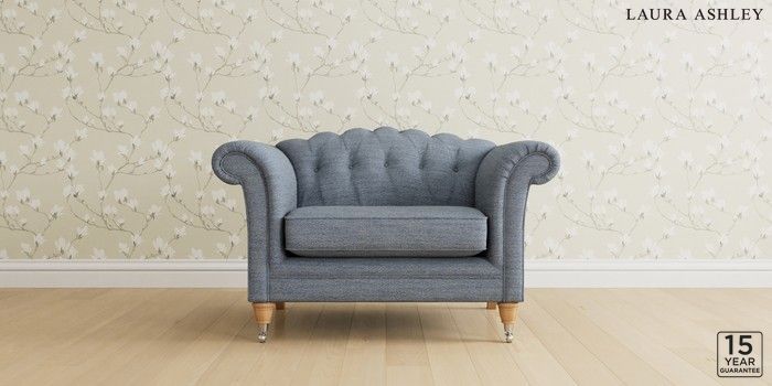 6.12.1 Buy Gloucester Button Back by Laura Ashley Snuggle Harley Seaspray Blue Low Chrome Castor - Light Oak from the Next UK online shop Click here to use our accessible website