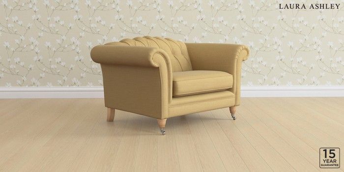 6.12.1 Buy Gloucester Button Back by Laura Ashley Snuggle Kinsham Ochre Yellow Low Chrome Castor - Light Oak from the Next UK online shop Click here to use our accessible website