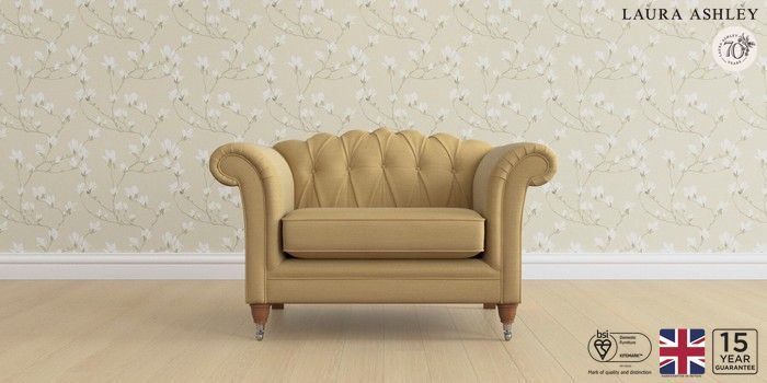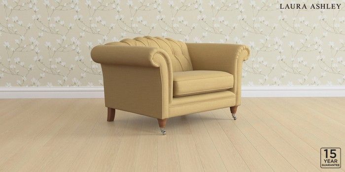 6.12.1 Buy Gloucester Button Back by Laura Ashley Snuggle Kinsham Ochre Yellow Low Chrome Castor - Teak from the Next UK online shop Click here to use our accessible website