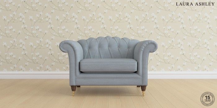 6.12.1 Buy Gloucester Button Back by Laura Ashley Snuggle Kinsham Seaspray Blue Low Brass Castor - Chestnut from the Next UK online shop Click here to use our accessible website