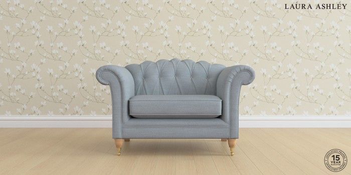 6.12.1 Buy Gloucester Button Back by Laura Ashley Snuggle Kinsham Seaspray Blue Low Brass Castor - Light Oak from the Next UK online shop Click here to use our accessible website