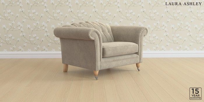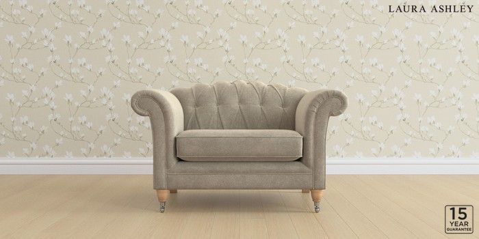 6.12.13 Buy Gloucester Button Back by Laura Ashley Snuggle Lundar Chenille Truffle Natural Low Chrome Castor - Light Oak from the Next UK online shop Click here to use our accessible website