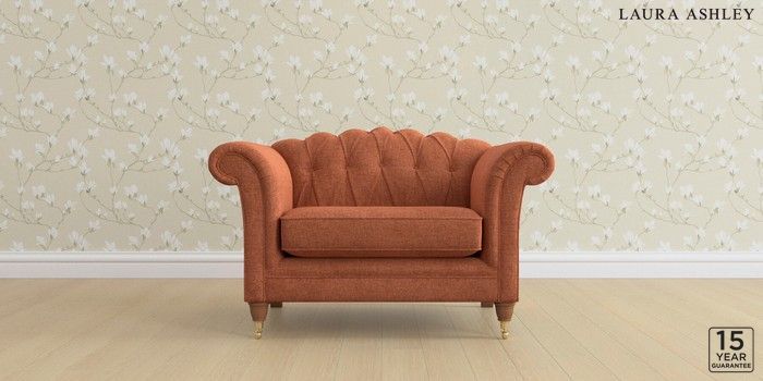 6.12.1 Buy Gloucester Button Back by Laura Ashley Snuggle Nantmor Rust Orange Low Brass Castor - Teak from the Next UK online shop Click here to use our accessible website
